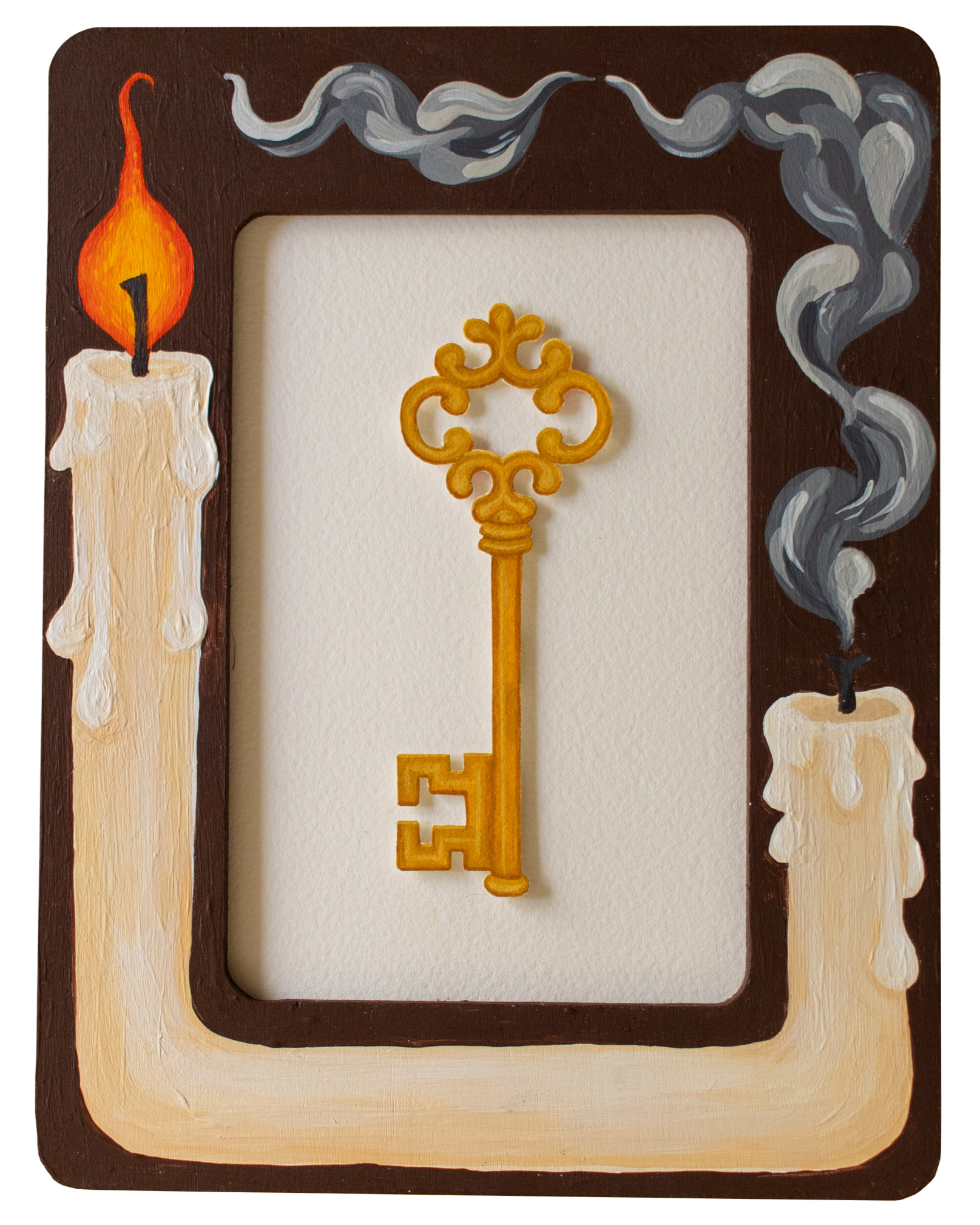 For paintings on wood panel or stretched canvas, I suggest choosing a wood floating frame for your work. For works on paper, I suggest framing it under glass, ideally with a mat if it is a smaller piece.